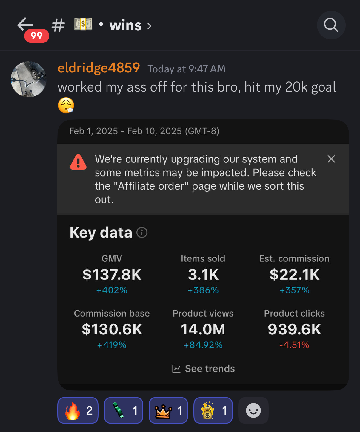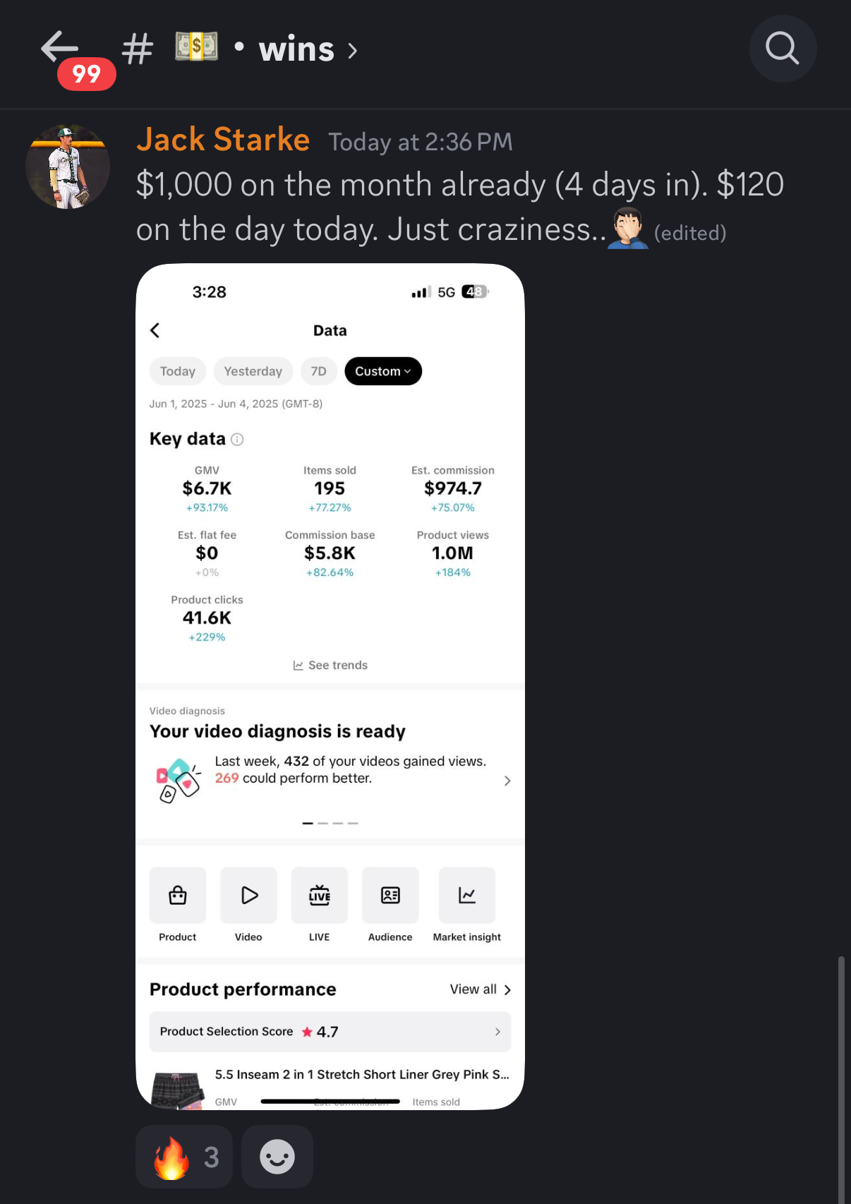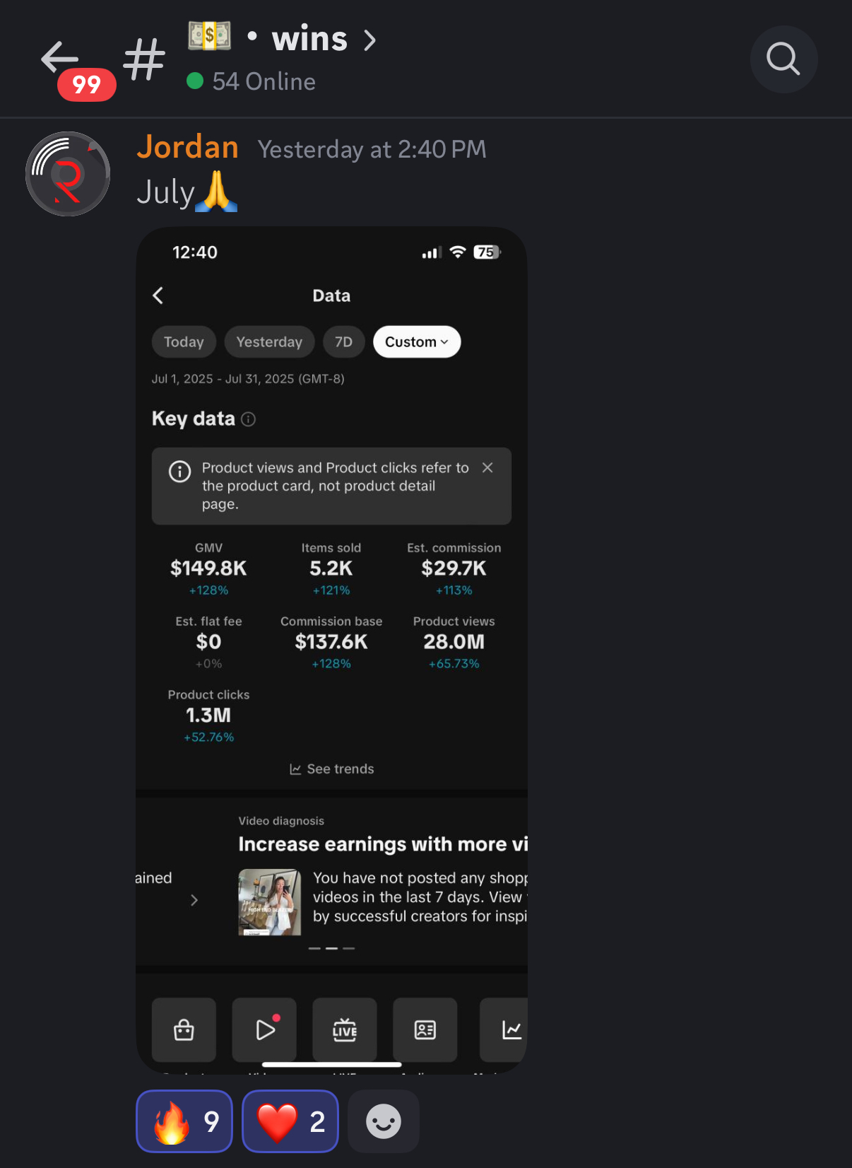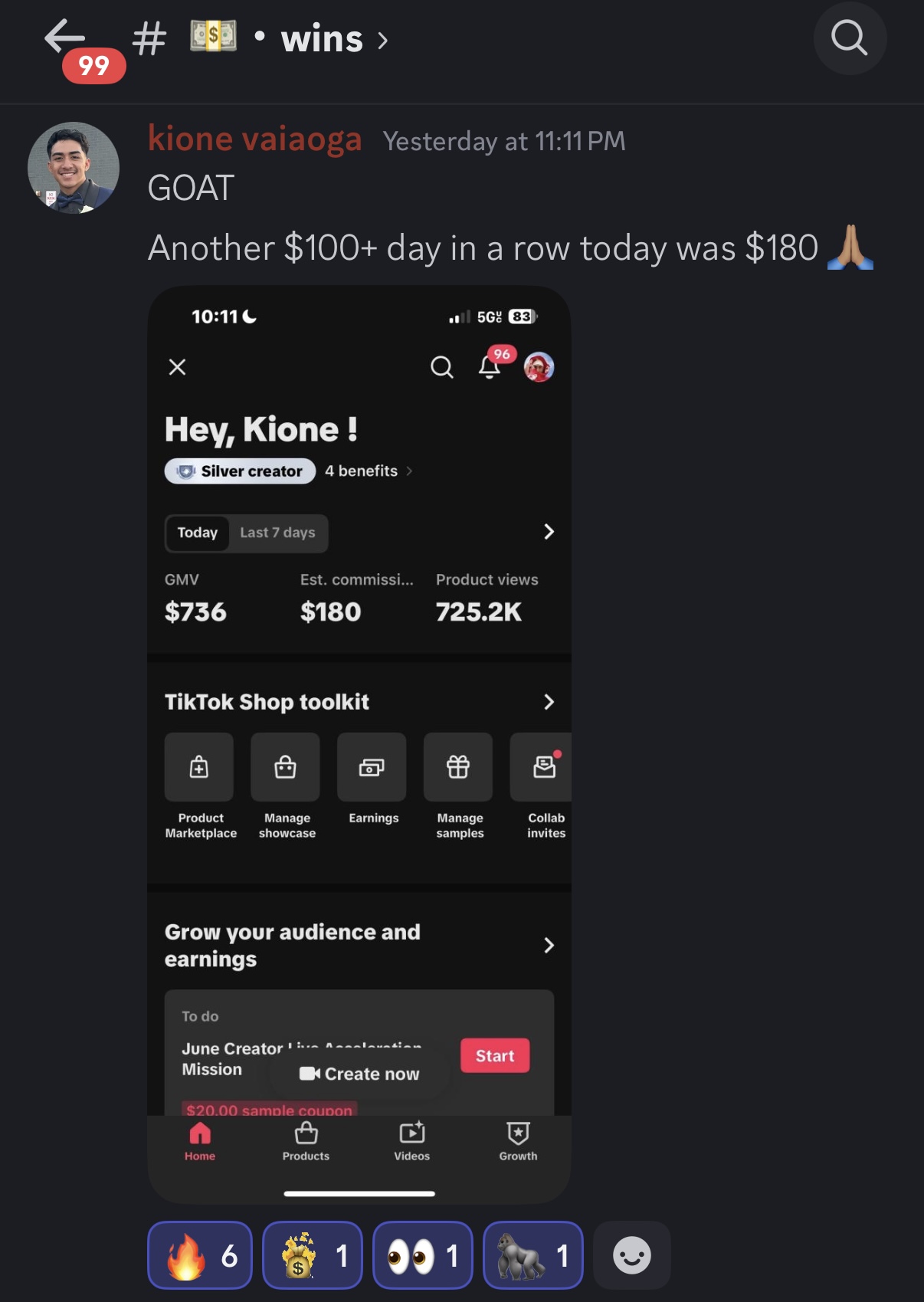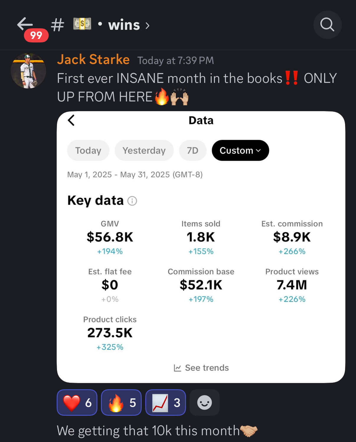 Through our private Discord community, weekly classes, and on-demand resources, we teach members how to curate high-performing TikTok Shop videos and drive real sales.
